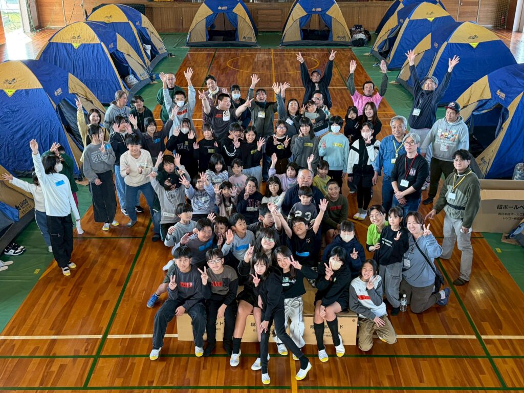 ・体育館内でテント泊
